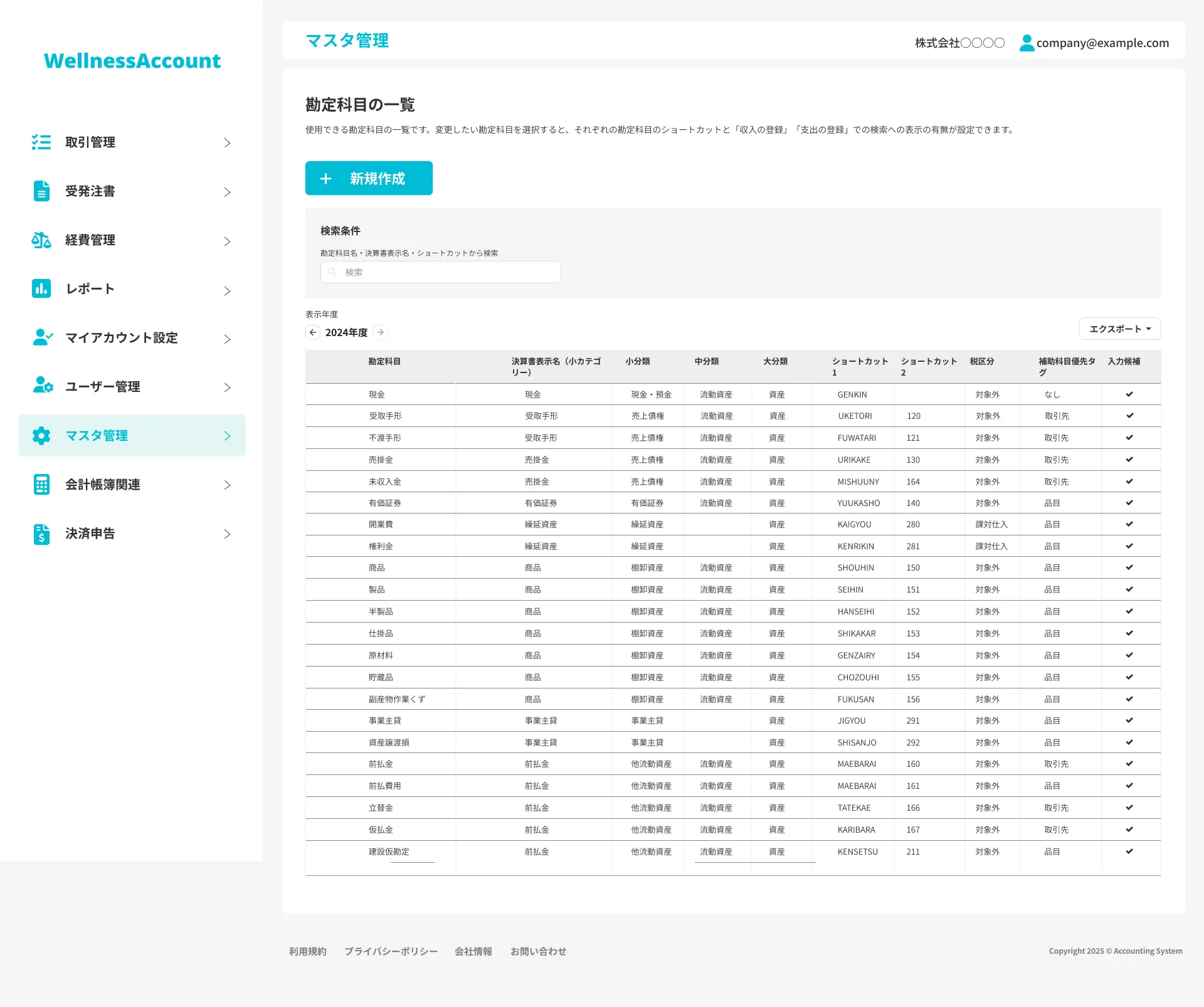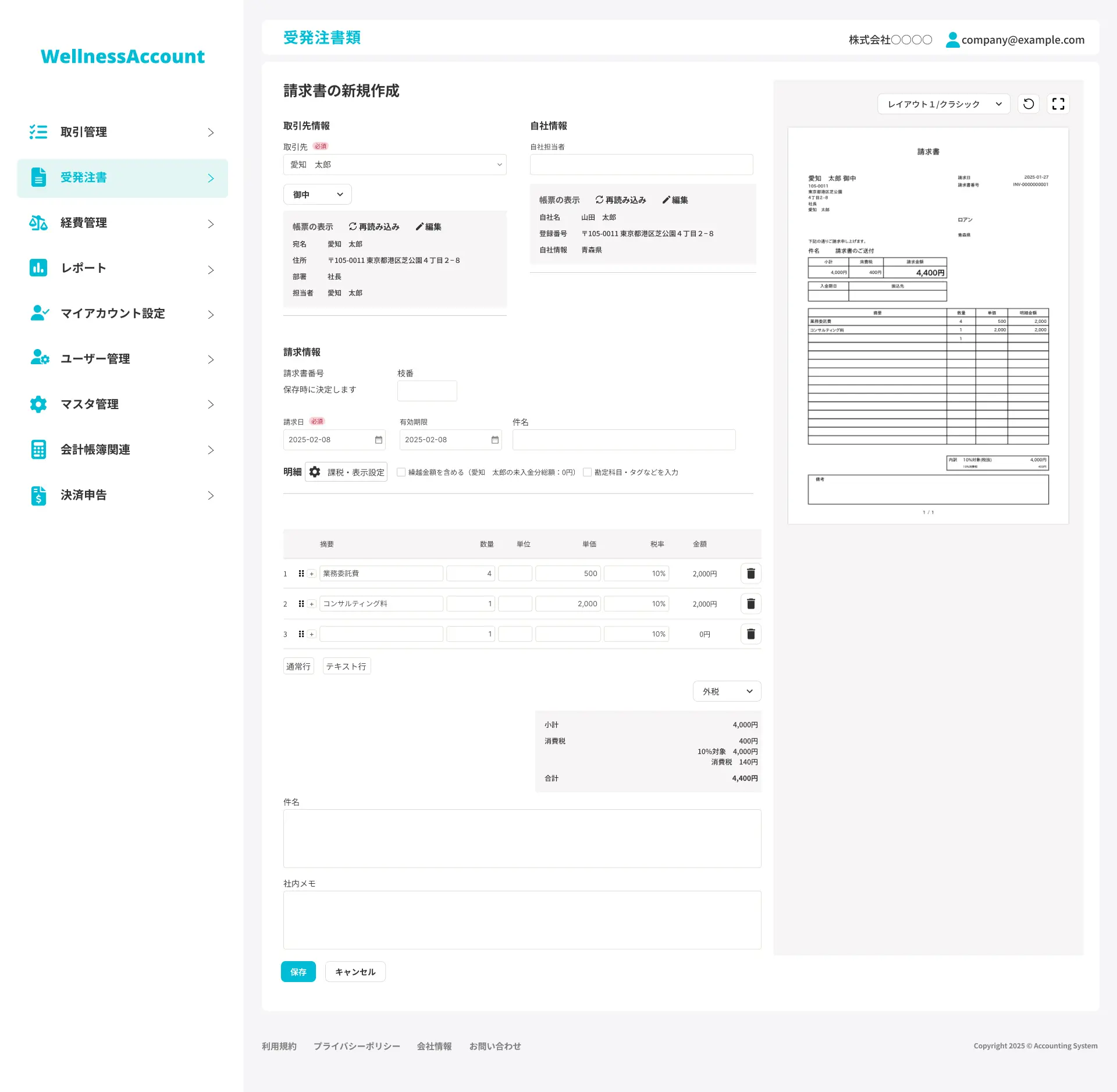 ・取引先マスタ:取引企業情報を登録し、請求書発行や仕訳入力を簡素化。