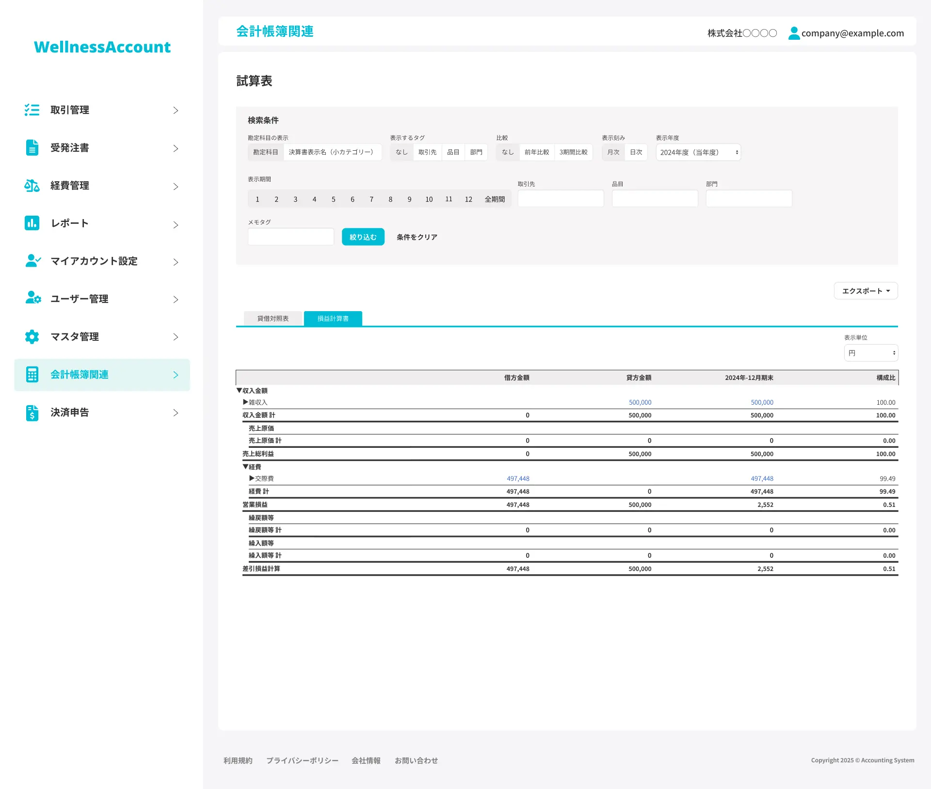 ・総勘定元帳:勘定科目ごとの取引履歴を自動整理し、リアルタイムで財務状況を把握可能。