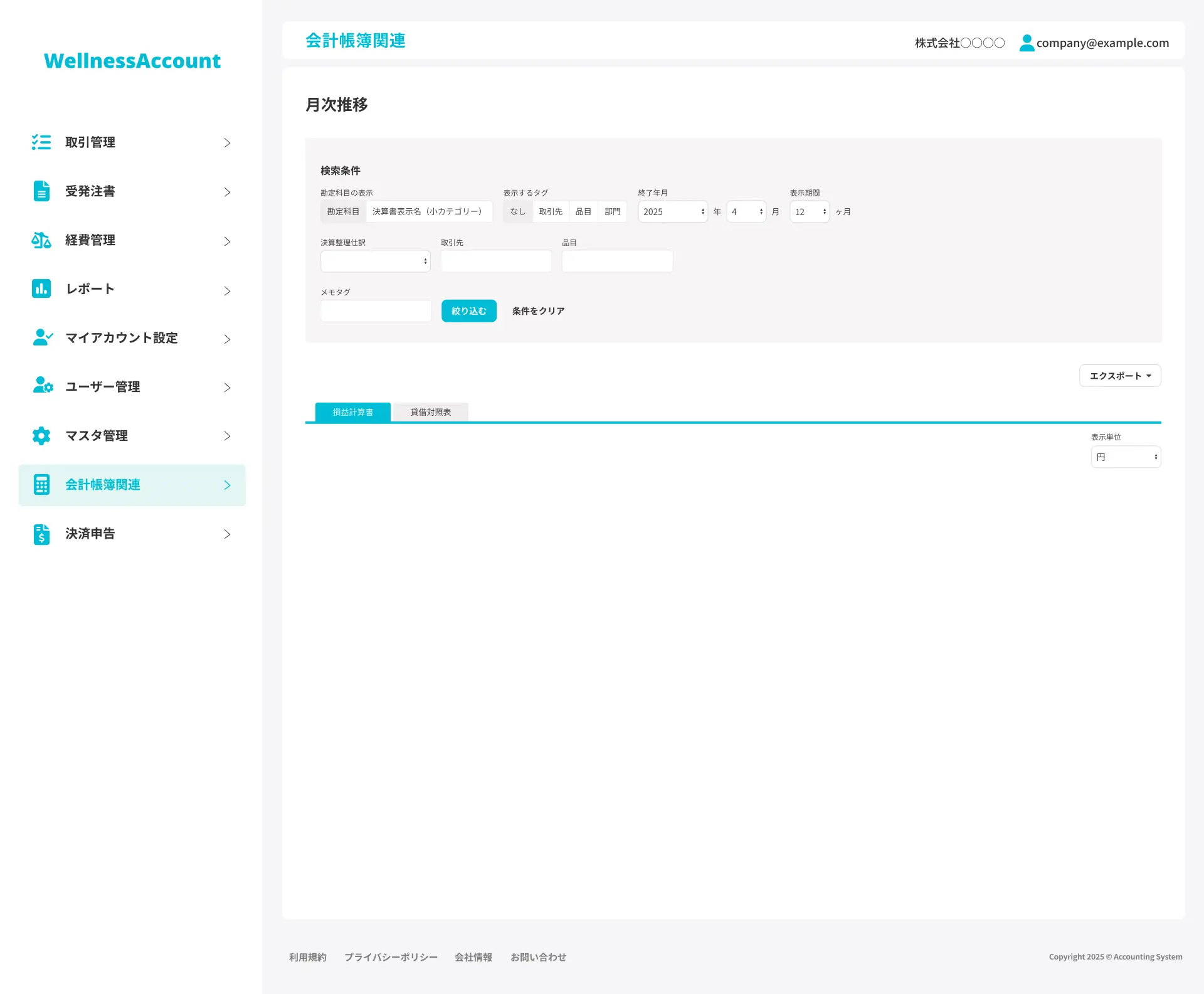 月ごとの収益・支出の推移が追跡され、経営陣が事業の現状を把握。
